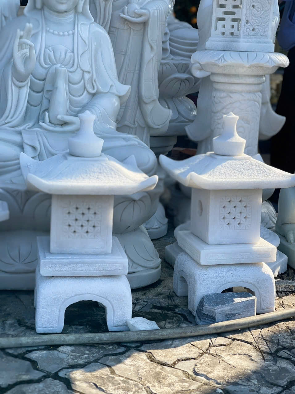 Ánh sáng từ ngọn nến trên chân đèn đá trắng tượng trưng cho sự tốt lành, may mắn và sự hiện diện của tổ tiên, thần linh, mang lại sự ấm áp cho gia đình.