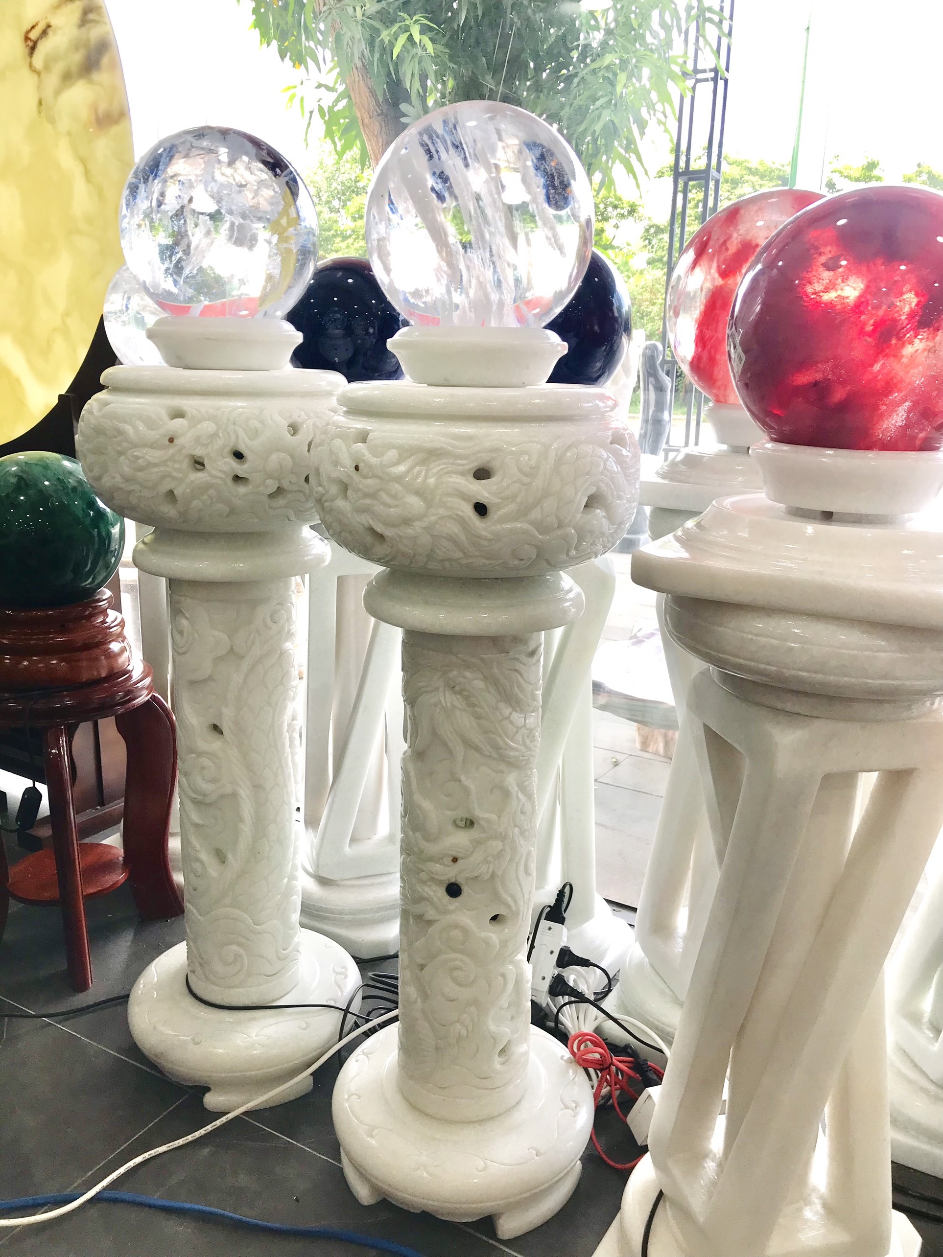 0 đánh giá cho Chân đèn đá trắng nguyên khối chạm khắc cao 1m T075