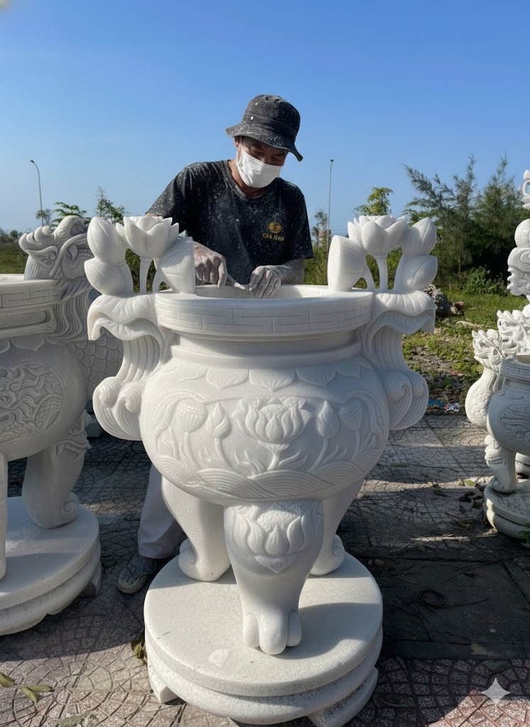 0 đánh giá cho Lư hương đá trắng cao 1.25m, ngang 85cm, đk miệng 55cm T184