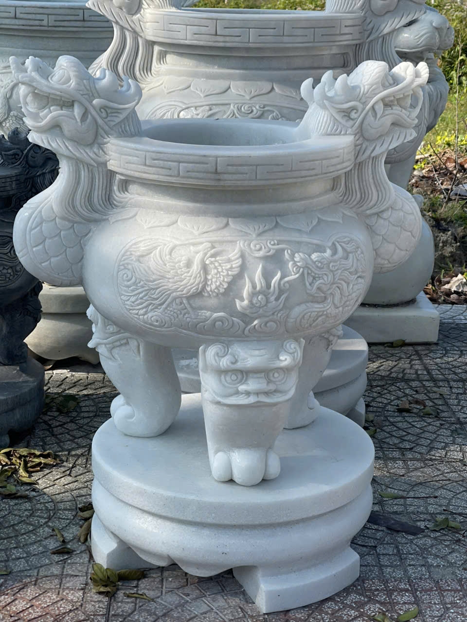 + Với vẻ đẹp tự nhiên và sang trọng, lư hương đá trắng trở thành điểm nhấn độc đáo cho không gian sống, sân vườn, hoặc các công trình kiến trúc.