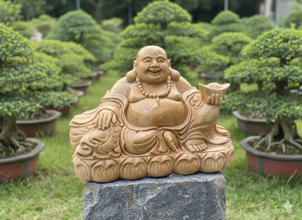• Bức tượng này là biểu tượng của sự Hạnh Phúc viên mãn kết hợp với Tài Lộc dồi dào. Đặt tượng Di Lặc cầm vàng trong nhà (đặc biệt là hướng về phía cửa chính hoặc trong khu vực tài lộc) được tin là sẽ thu hút may mắn, tiền tài, và giữ cho gia đình luôn vui vẻ, hòa thuận.