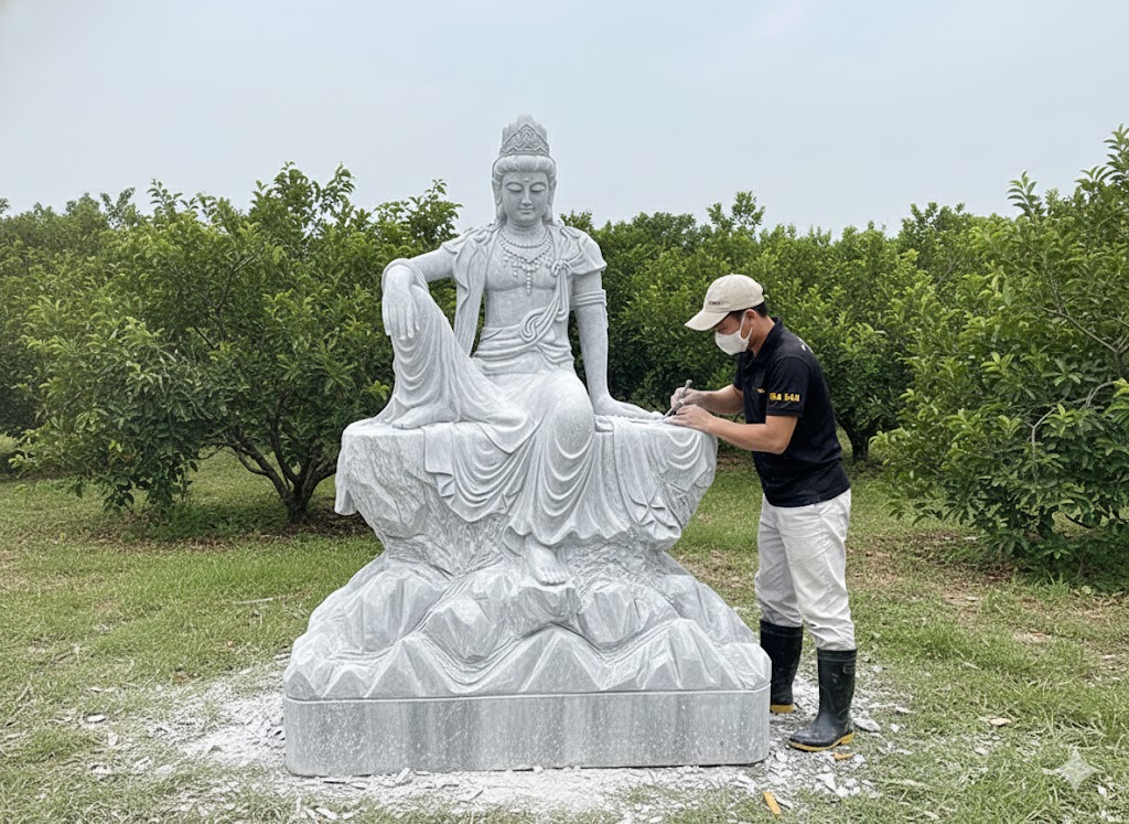 +Hình tượng Quan Âm ngồi trên đài đá là điểm tụ linh khí mạnh mẽ, giúp cân bằng năng lượng âm dương, tạo nên sự hòa hợp, thu hút may mắn và bình an cho không gian thờ tự.