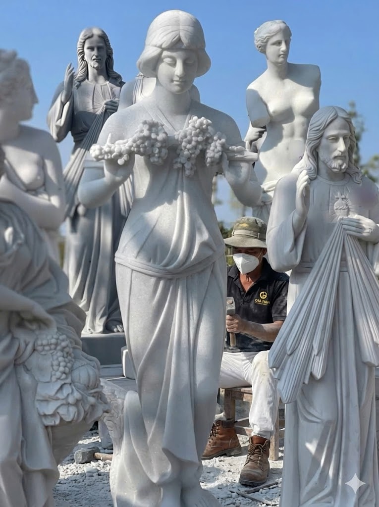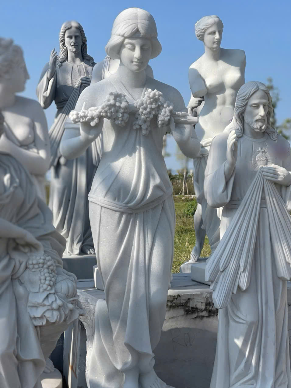 0 đánh giá cho Tượng nữ thần nông sản đá trắng nguyên khối cao 1.9m, ngang 50cm, dài 60cm T183