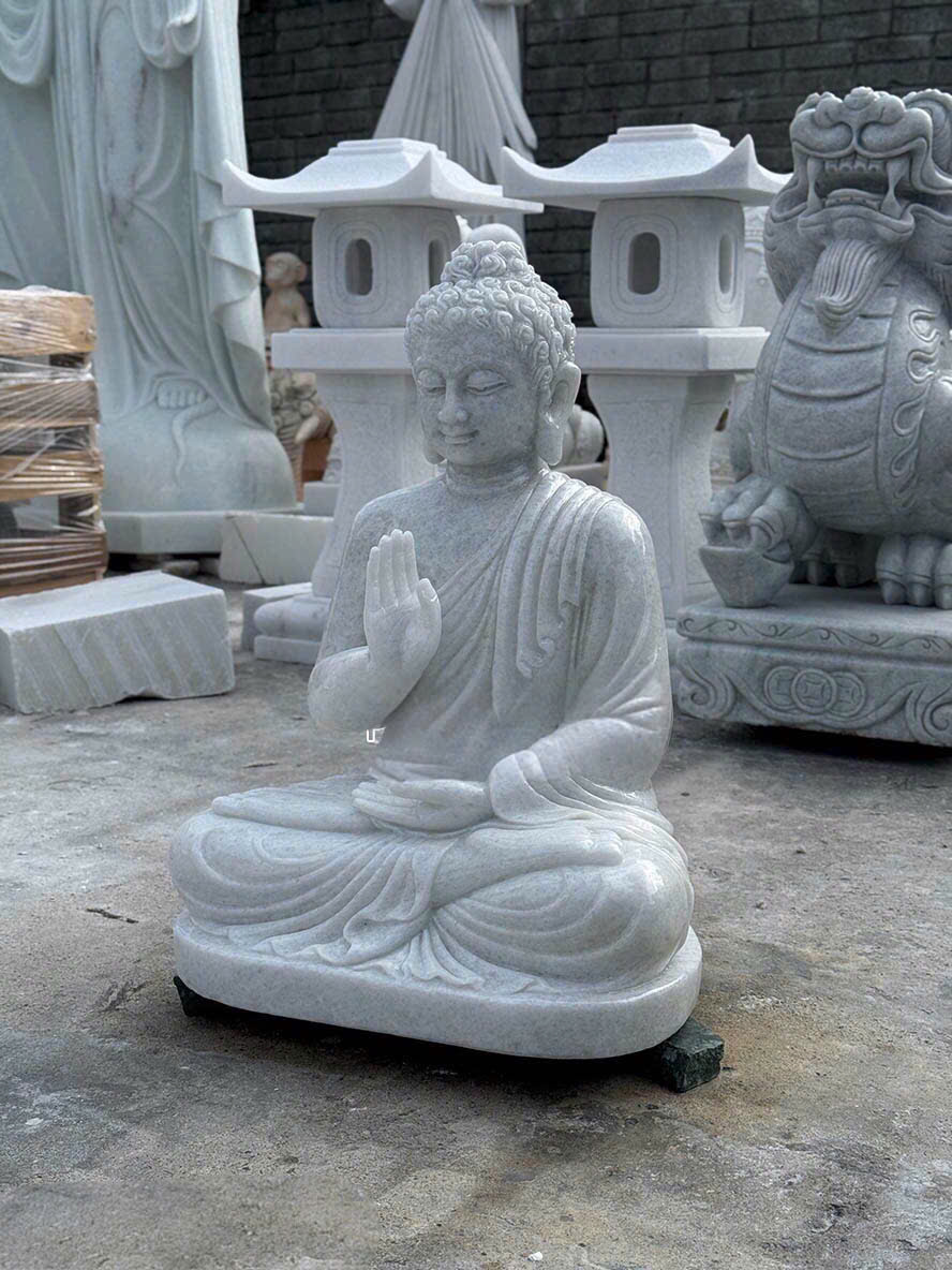 ượng PhẬT THÍCH CA ngồi được chế tác tinh xảo từ đá trắng nguyên khối tự nhiên.biểu trưng cho sự thanh tịnh và giác ngộ. thể hiện thần thái từ bi, an nhiên và trí tuệ của Đức Phật