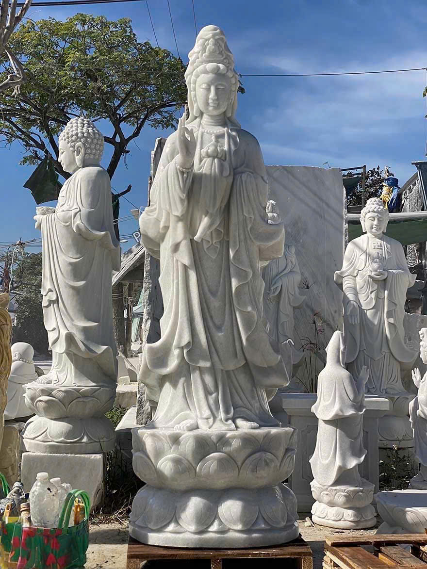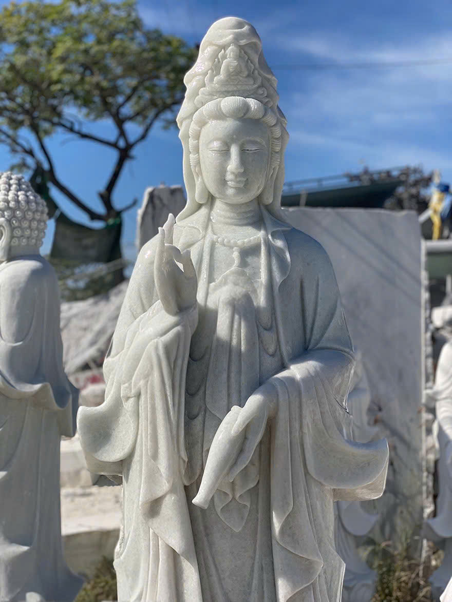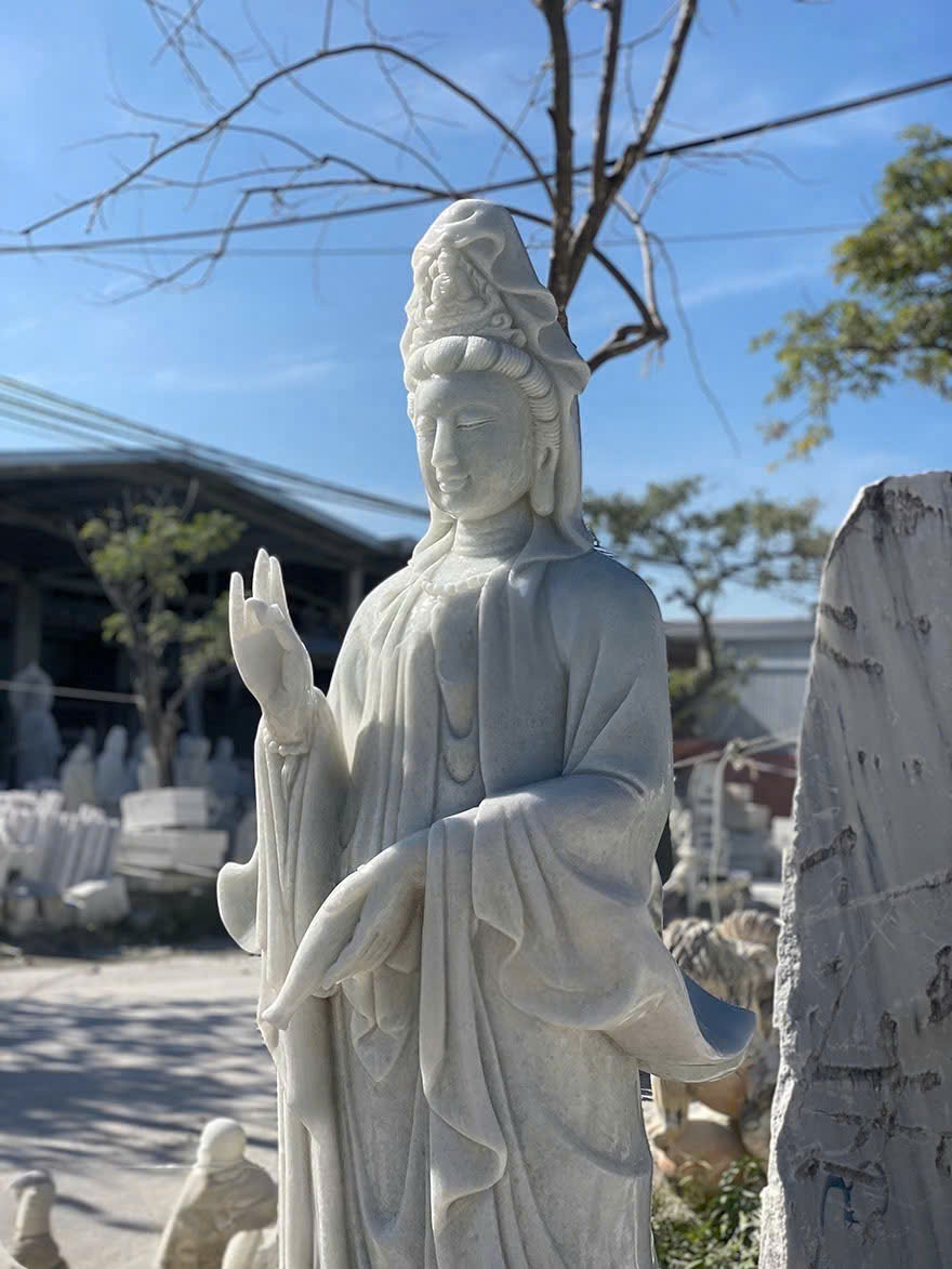 Tượng quan âm đá trắng tự nhiên đem lại bình an và may mắn cao 2m