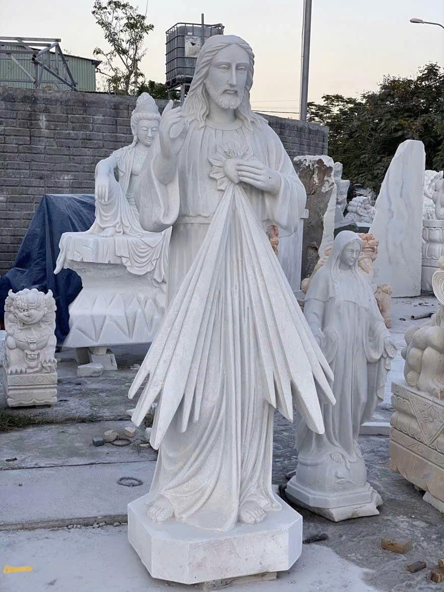 Tượng Chúa Giê Su đá trắng từ lâu đã trở thành một trong những tác phẩm điêu khắc được nhiều giáo dân lựa chọn để trưng bày tại nhà thờ, khuôn viên gia đình, công trình tôn giáo hay không gian thiêng liêng riêng tư. Với vẻ đẹp trang nghiêm, thuần khiết và tinh tế, tượng Chúa bằng đá trắng mang đến cảm giác bình an, che chở và sự hiện diện thiêng liêng của Chúa trong đời sống hằng ngày.